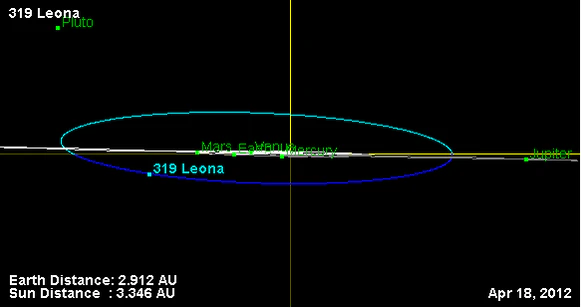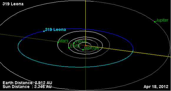 Орбита астероида Леона и его положение в Солнечной системе