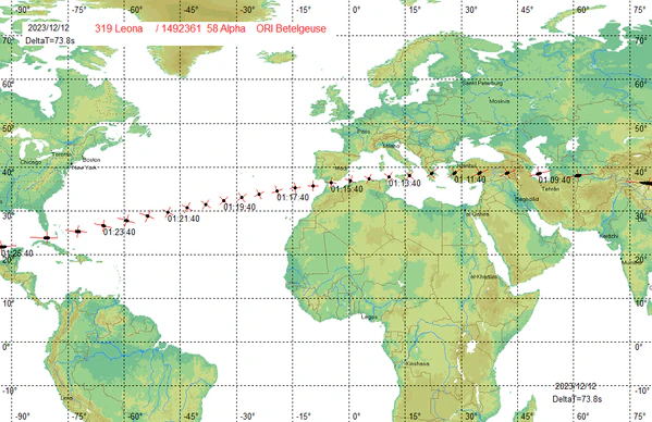 12 декабря 2023 года ожидается покрытие астероидом (319) Леона звезды Бетельгейзе[1].