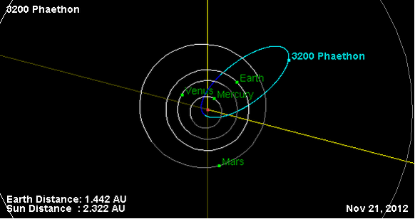 Орбита астероида Фаэтон и его положение в Солнечной системе