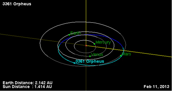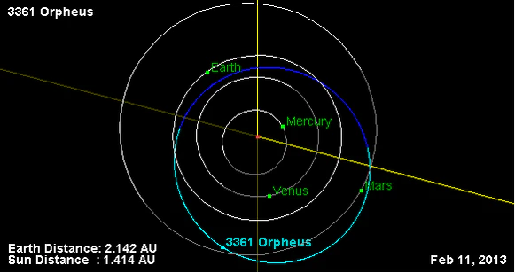 Орбита астероида Орфей и его положение в Солнечной системе