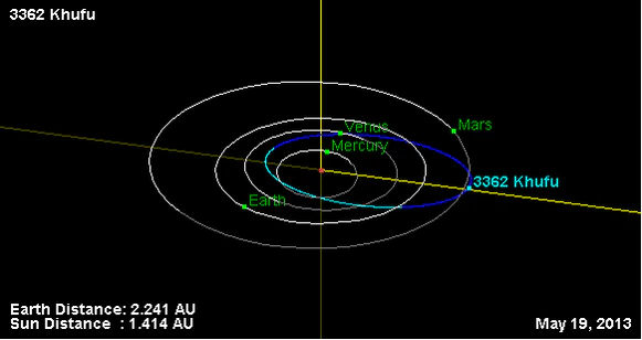 Орбита астероида Хуфу и его положение в Солнечной системе