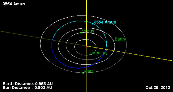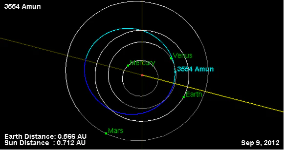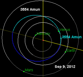 Астероид обладает довольно вытянутой орбитой, из-за которой в процессе своего движения вокруг Солнца он пересекает не только орбиту Земли, но и Венеры. Амон один из немногих астероидов, которые подходят к Венере практически вплотную; так, во время сближений в 1964, 2034 и 2103 годах его расстояние до планеты будет равняться всего 10 млн км[2].