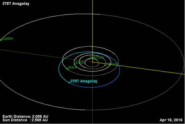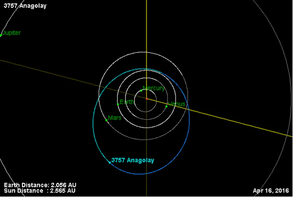 Орбита астероида Анаголай и его положение в Солнечной системе