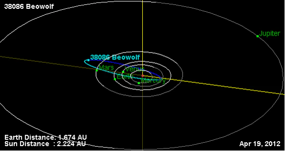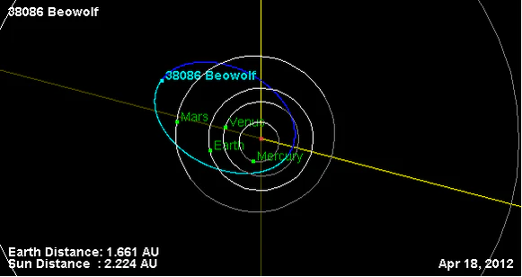 Орбита астероида Беовульф и его положение в Солнечной системе