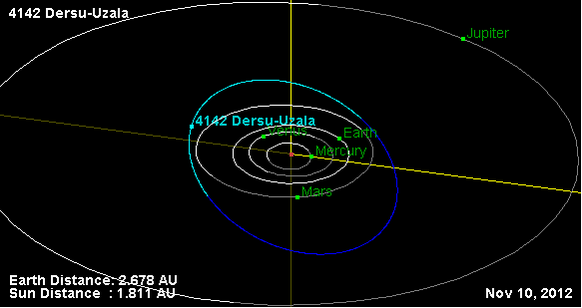 Орбита астероида Дерсу Узала и его положение в Солнечной системе