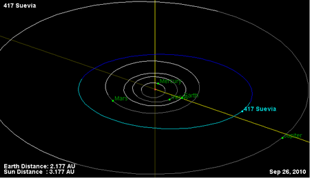 (417) Суэвия (нем. Suevia) — астероид главного пояса, который принадлежит к редкому спектральному классу K. Был обнаружен 6 мая 1896 года немецким астрономом Максом Вольфом в обсерватории Хайдельберг и назван в честь старейшей в Хайдельберге студенческой корпорации[1].
