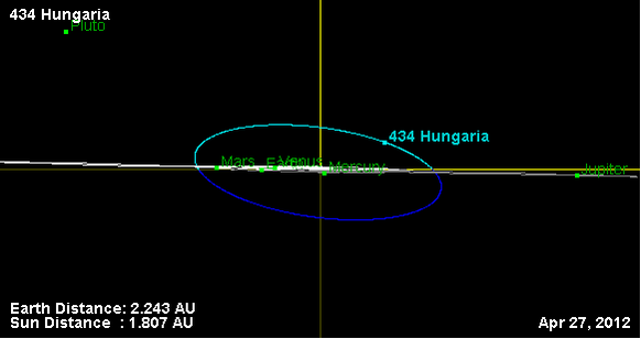 Орбита астероида Венгрия и его положение в Солнечной системе