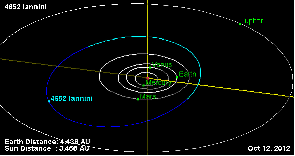 Орбита астероида Ианнини и его положение в Солнечной системе