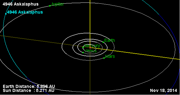 Орбита астероида Аскалаф и его положение в Солнечной системе