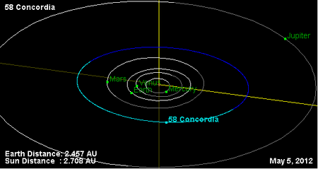 (58) Конкордия (лат. Concordia) — астероид главного пояса, принадлежащий к тёмному спектральному классу C. Он был открыт 24 марта 1860 года немецким астрономом Робертом Лютером в Дюссельдорфской обсерватории и назван в честь римской богини согласия и покровительницы супружеского мира Конкордии (её греческий аналог — Гармония)[2].