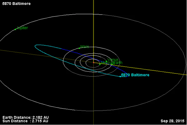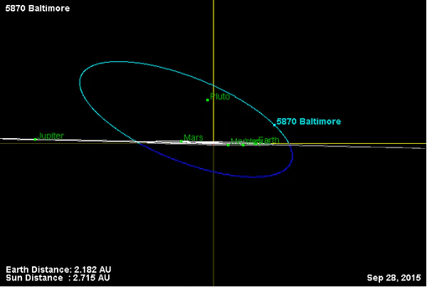 Орбита астероида Балтимор и его положение в Солнечной системе