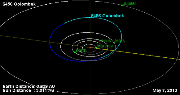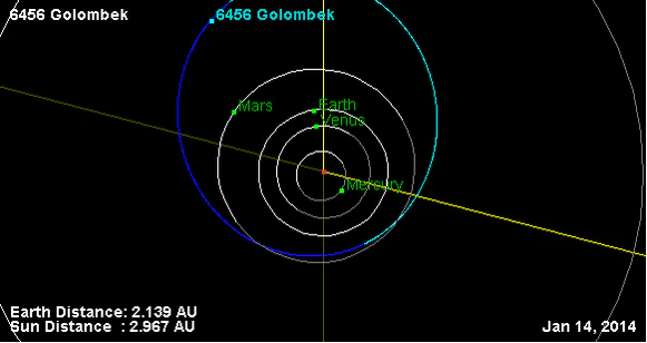 Орбита астероида Голомбек и его положение в Солнечной системе