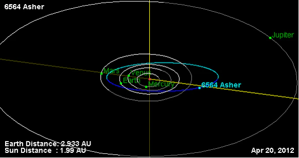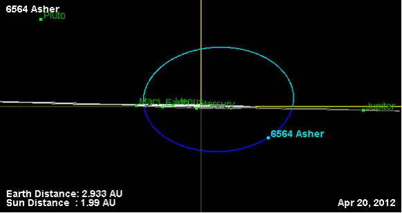 Орбита астероида Эшер и его положение в Солнечной системе