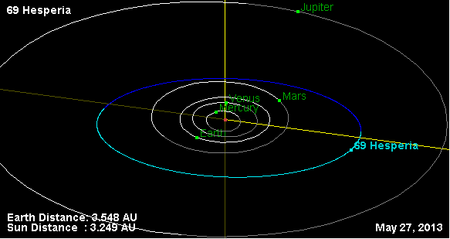 (69) Гесперия (лат. Hesperia) — астероид главного пояса, который принадлежит к спектральному классу M. Он был открыт 26 апреля 1861 года итальянским астрономом Джованни Скиапарелли в Брерской обсерватории и назван в честь дочери Нюкты и Океана, одной из гесперид в древнегреческой мифологии. Однако это название также может быть связано с Италией, поскольку древние греки этим термином называли Апеннинский полуостров[3].