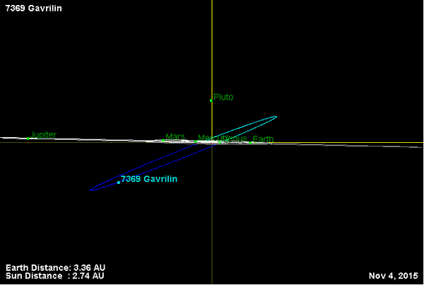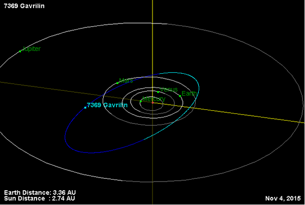 Орбита астероида Гаврилин и его положение в Солнечной системе