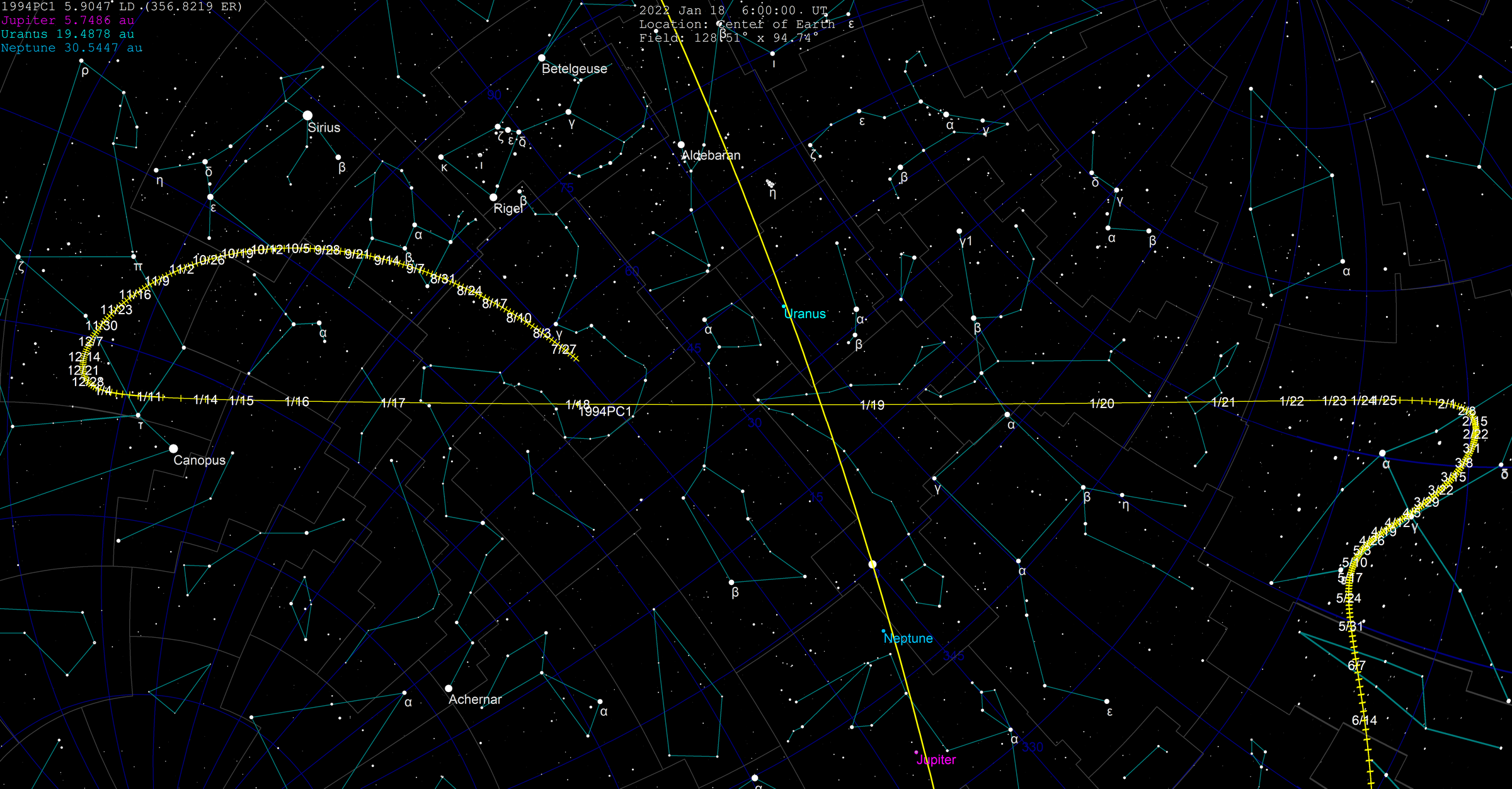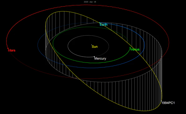 - Sky and Telescope: The kilometer-wide, potentially hazardous asteroid 1994 PC1 will fly past Earth on January 18th.