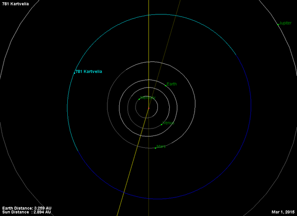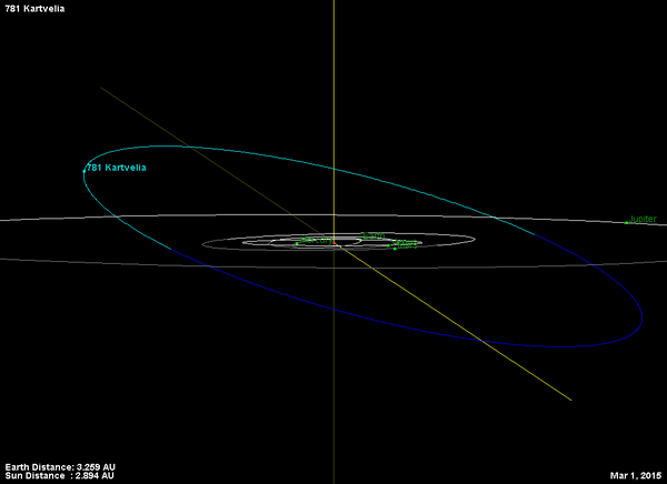 Орбита астероида Картвелия и его положение в Солнечной системе