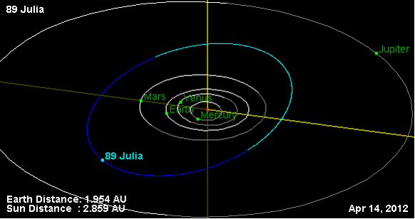 (89) Юлия (лат. Julia) — крупный астероид главного пояса, который принадлежит к светлому, богатому силикатами и пироксенами, спектральному классу S и возглавляет небольшое одноимённое семейство астероидов. Он был открыт 6 августа 1866 года французским астрономом Эдуаром Стефаном в Марсельской обсерватории и назван в честь христианской святой Юлии Корсиканской, умершей в V веке[7].