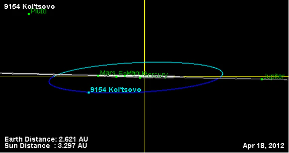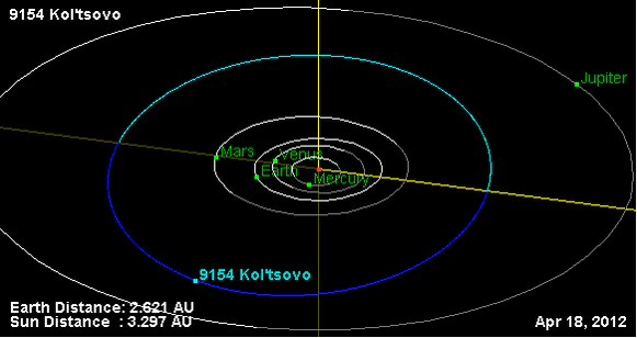Орбита астероида Кольцово и его положение в Солнечной системе