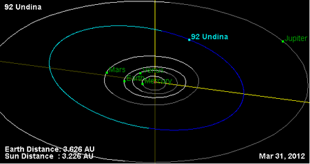 (92) Ундина (нем. Undina) — астероид главного пояса, который был открыт 7 июля 1867 года американским астрономом Кристианом Петерсом в обсерватории Литчфилд, США и назван в честь Ундины, героини одноимённой повести немецкого писателя Фридриха Де ла Мотт Фуке[2].