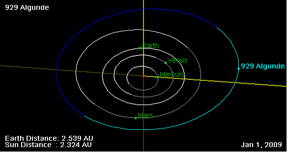Алгунда не пересекает орбиту Земли, и делает полный оборот вокруг Солнца за 3,35 Юлианских лет.