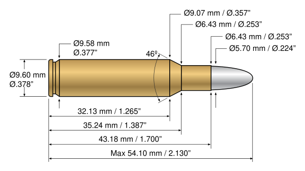 | Настоящий калибр пули, мм | 5,7 (0.224 дюйма) |
