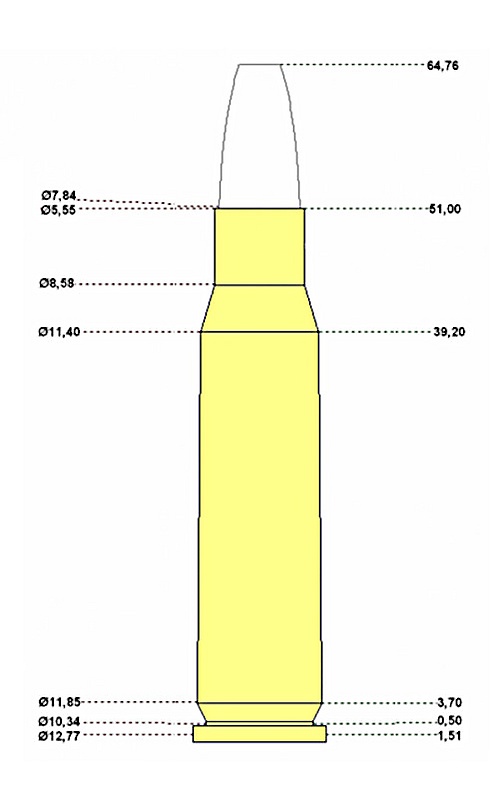 | Форма гильзы | с закраиной, бутылочной формы |