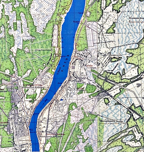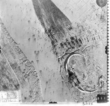 Аэрофотосъёмка Люфтваффе, выполненная 25 января 1943 года. В правом нижнем углу видна 8-я ГРЭС с высокими железнодорожными насыпями, чуть севернее железобетонные дома 2-го Городка, Школа, ещё севернее Больница. Восточнее от домов — разрушенные артиллерией кирпичные строения.