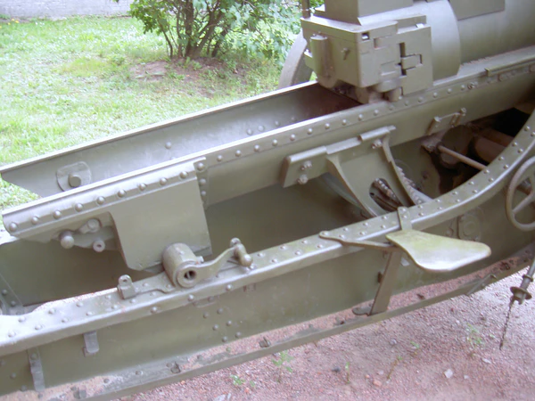 - однобрусный лафет с неподрессоренным колёсным ходом.