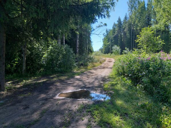 Выход к деревне Песочный Мох Лужского района. Ранее на топографических картах обозначалась под названием Песочный Мох[4].