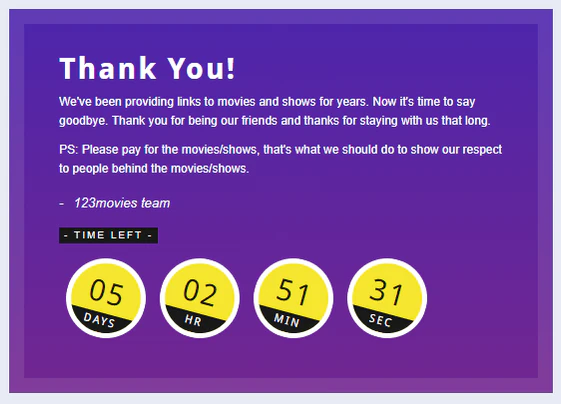 123Movies, GoMovies, GoStream, Me, или 123киноклуб, — сеть веб-сайтов потокового вещания из Вьетнама, которая позволяет пользователям смотреть фильмы бесплатно. Американская ассоциация киноискусств (MPAA) в марте 2018 года назвала его «самым популярным нелегальным сайтом в мире»[2][3][4], а несколько недель спустя его закрыли на основании уголовного расследования вьетнамские власти[5][6]. По состоянию на апрель 2020 года сеть всё ещё активна через сайты-клоны[7].
