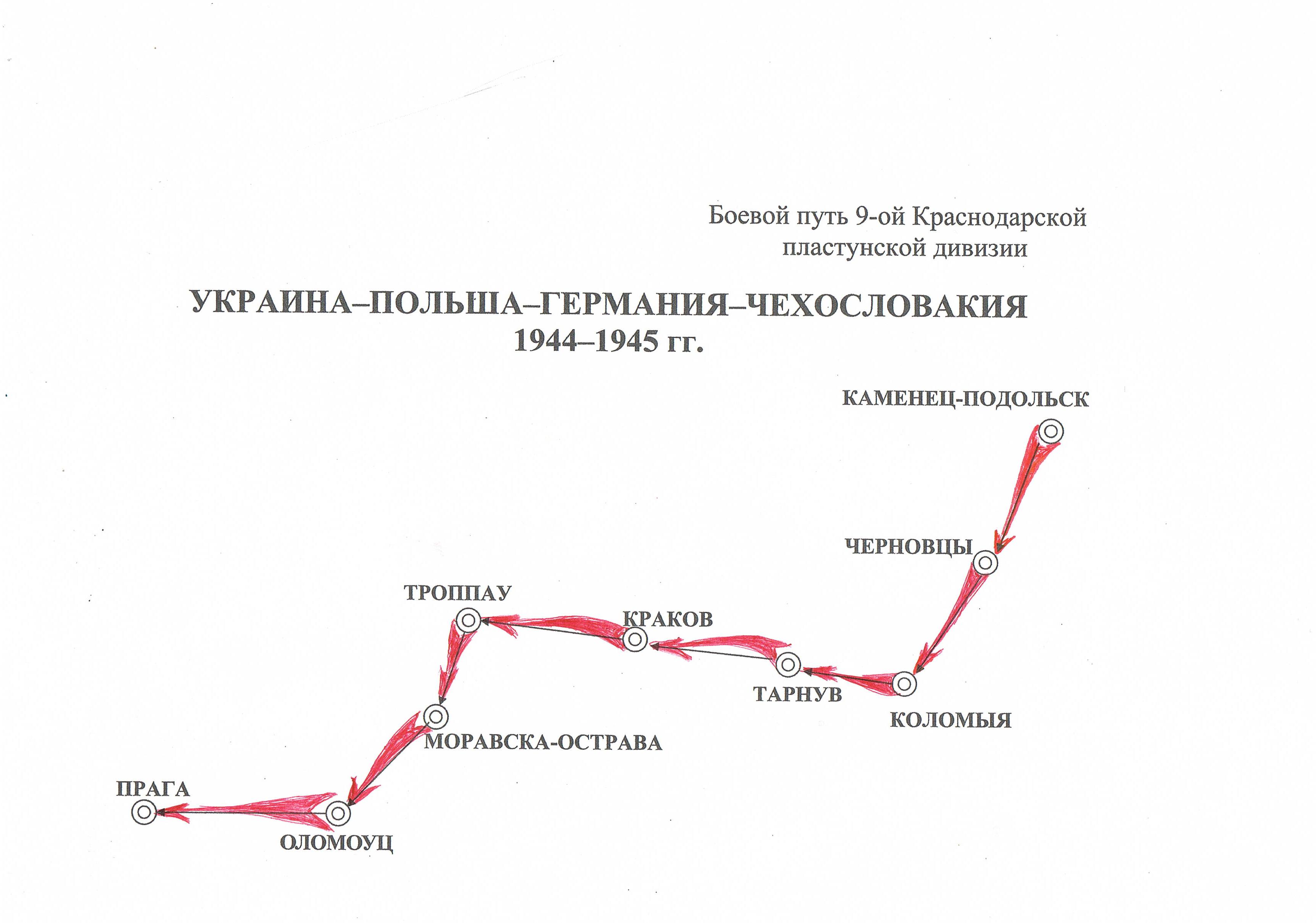 | с 01.05.1945 года | 1-й Украинский фронт | 60-я армия | 28-й стрелковый корпус, 9-я пластунская дивизия | - |