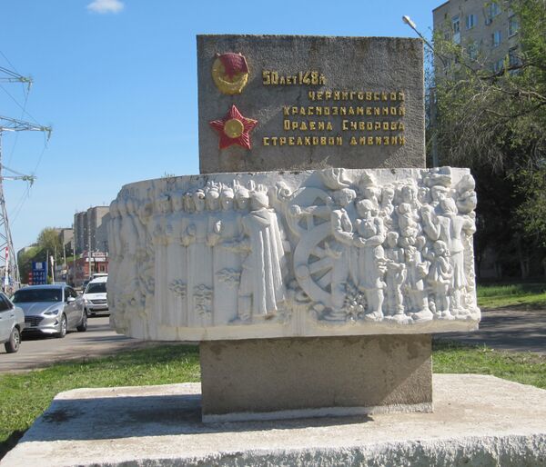 Памятник в г. Энгельс в честь 50-летия 148-й Черниговской стрелковой дивизии был открыт 25 сентября 1989 года, скульптор Геннадий Тугушев. В 2010 году памятник перенесли на пересечении улиц 148-й Черниговской дивизии и Марины Расковой.[2]