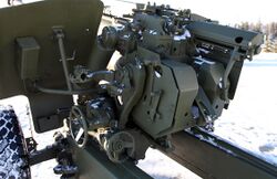 Для повышения скорострельности и снижения утомляемости номеров расчёта орудие оснащено двумя пружинными досылателями броскового типа для досылки снарядов и зарядов.