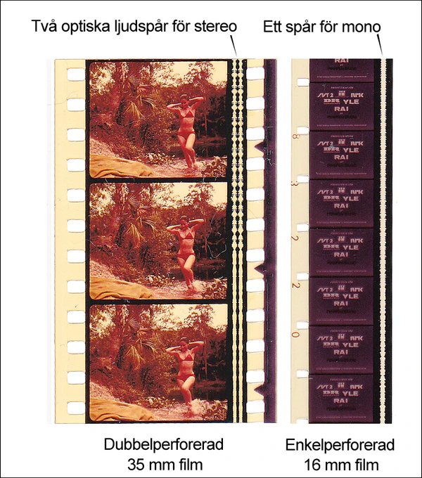 В 1969 году шведский кинооператор Руне Эриксон предложил производственный формат — «Супер-16» на 16-мм киноплёнке с односторонней перфорацией[52]. Он был рассчитан на последующее увеличение при оптической печати кашетированных совмещённых фильмокопий на 35-мм киноплёнке. Для печати на 16-мм киноплёнке новый формат непригоден, поскольку ширина его кадра увеличена за счёт отказа от резервирования пространства для звуковой дорожки с одного края плёнки. Первые камеры формата «Супер-16» были получены переделкой стандартных в мастерских киностудий, но через некоторое время многие производители запустили промышленный выпуск оборудования: киносъёмочной аппаратуры, кинокопировальных аппаратов, монтажных столов и т. д. В настоящее время кадр «Супер-16» принят в качестве международного стандарта SMPTE наряду с обычным кадром 16-мм.
