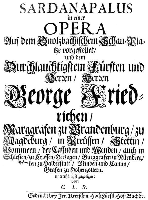 - Кристиан Людвиг Боксберг — «Сарданапал» (нем. Sardanapalus).