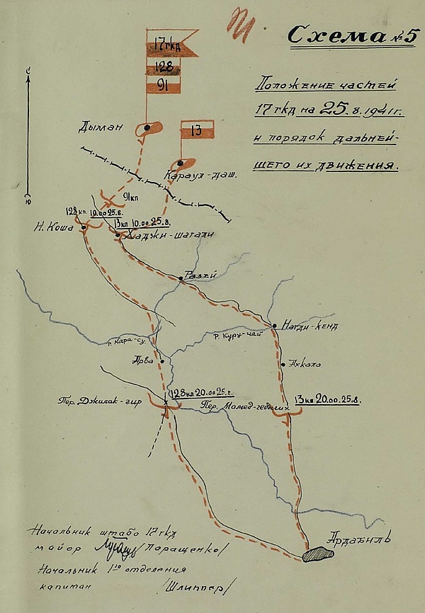 К исходу 24 августа части дивизии сосредоточились в указанном районе: 91 и 128 кп у с. Дыман, 13 кп — в районе Караул-даша. В ночь на 25-е число перед ними поставили задачу в 5.30 утра перейти государственную границу на участке Караван-Сарай — Сейттар и к 10.00 овладеть В. Коша, Хаджи-Шагали, затем захватить перевалы Джалак-Гир, Мамед-Гидыги и к исходу 26 августа занять г. Ардебиль.