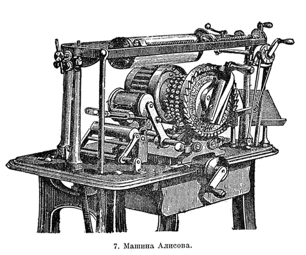 - Российский изобретатель Михаил Иванович Алисов изобрёл наборно-пишущую машину, известную как «скоропечатник» или «скорописец», с целью замены каллиграфического переписывания бумаг и рукописей.