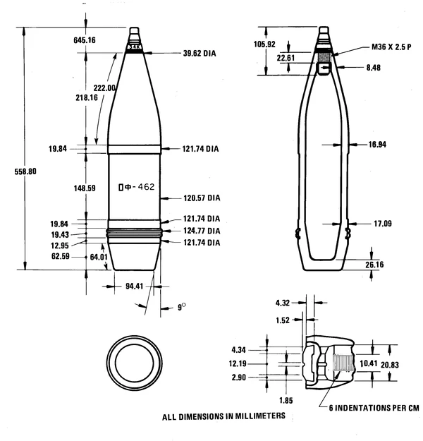 | 53-ОФ-462(Ж) | 21,7 | 3,67 | РГМ-2, В-90, АР-5 | 690 | 15,2 | 1930-е | |