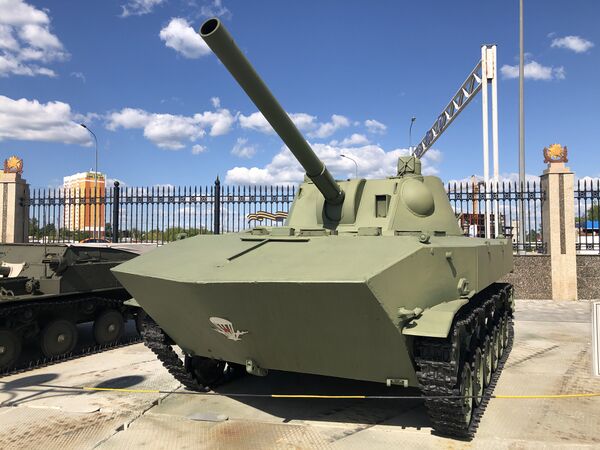 К середине 1960-х годов артиллерийское вооружение полков и дивизий ВДВ представляло собой широкую номенклатуру военной техники, среди которой были дивизионные: 122-мм гаубицы Д-30, 85-мм самодвижущиеся пушки СД-44 и самоходные артиллерийские установки АСУ-85. Полковая артиллерия была представлена полковыми миномётами М-120 и самоходными артиллерийскими установками АСУ-57. В 1969 году была проведена НИР «Купол-2», по результатам которой было принято решение о создании универсального самоходного артиллерийского орудия. В то же время работы по 2С2 зашли в тупик, так как шасси не выдерживало отдачу орудия 2А32. Разрабатываемый самоходный миномёт «Ландыш» не обеспечивал заданные углы горизонтального наведения, а гладкоствольные 120-мм миномёты исчерпали свой потенциал по дальнейшему развитию и модернизации. Для использования в новом самоходном артиллерийском орудии были предложены два баллистических решения. А. Г. Новожиловым было предложено использовать баллистику французского 120-мм нарезного миномёта RT-61, в то время как Ф. Ф. Петров предлагал использовать 122-мм гаубицу М-30[5][6][7].
