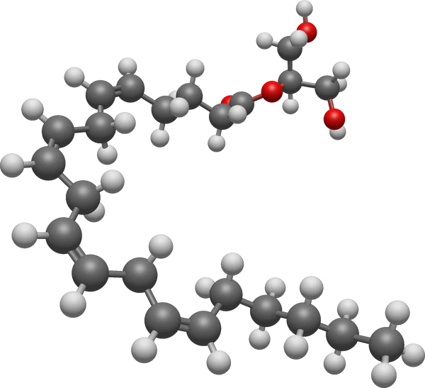 Он присутствует на относительно высоких уровнях в ЦНС. Был обнаружен в материнском коровьем и человеческом молоке[4]. Активность фосфолипазы С (PLC) и диацилглицероллипазы (DAGL) опосредует его образование[5]. 2-AG синтезируется из арахидоновой кислоты, содержащей диацилглицерин (DAG).