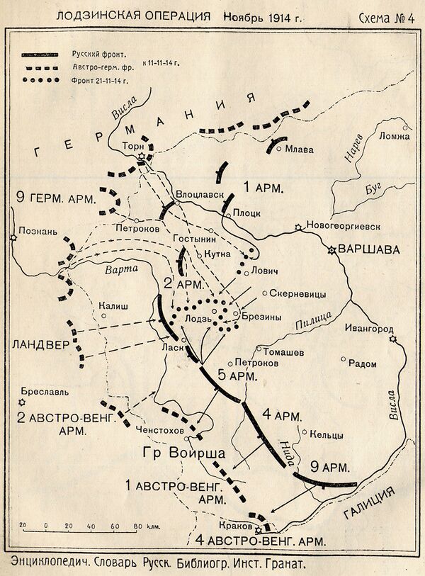 Армия участвовала в Варшавско-Ивангородской операции (15 сентября — 26 октября 1914 года). В ходе неё она сдерживала натиск 9-й немецкой армии на Варшаву, а после получения подкреплений нанесла сильный контрудар, отбросив немцев более чем на сотню километров. Тогда же армия отличилась в боях за город Прутков. В Лодзинской операции (октябрь-декабрь 1914 года) против 2-й армии пришелся главный удар немецких войск, но упорной обороной армия избежала разгрома, измотала противника и внесла большой вклад в окружение ударной немецкой группы войск генерала Шеффера.