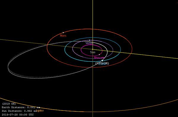 Хотя размеры 2019 ОК не велики — около 100 метров, среди околоземных астероидов с таким близким пролётом от Земли он довольно крупный. Двигается по вытянутой орбите и пресекает орбиты Марса, Земли и Венеры[2].