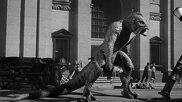 Существо борется со слоном зоопарка и распугивает меценатов. Выйдя в бой на улице Рима, два зверя уничтожают машины и повреждают здания. Существо в конце концов убивает слона и продолжает буйство. Колдер таранит его на своей машине и сбрасывает в реку Тибр, в которую оно погружается. Солдаты бросают гранаты в реку на поверхность существа, которое теперь является гигантским по размеру. Оно движется к Колизею и рушит древний храм, убивая на своём пути нескольких солдат. Когда существо исчезает в руинах, Колдер нападает на него с группой солдат, несущих базуку, загнав её на вершину сооружения. Колдер осуществляет прямой удар с базуки. Потом прямой огонь из танка рушит выступ, за который держится существо, и оно гибнет. С облегчением Мариса бежит в объятия Колдера.