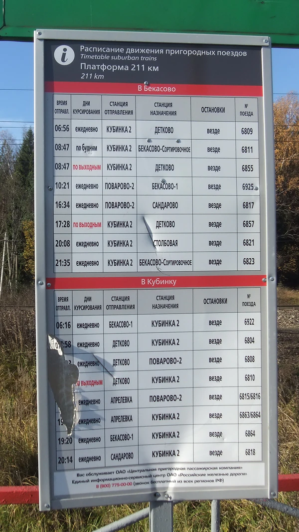 Время движения поезда со станции Кубинка-1 — примерно 6 минут.