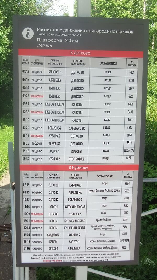 | Тарифная зона | 9 от Москвы-Пасс.-Киевской, общий тариф по Большому кольцу МЖД |