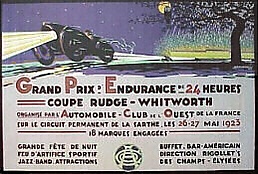 Первая гонка «24 часа Ле-Мана» прошла 26-27 мая 1923 года по дорогам общего пользования вокруг города Ле-Ман. Первоначально соревнования должны были проводиться раз в три года с призом в виде Трёхлетнего кубка Rudge-Whitworth, который должен был присуждаться автомобилю, прошедшему наибольшее расстояние по результатам трёх последовательных 24-часовых гонок. От этой идеи отказались в 1928 году, когда стали определять победителя в общем зачёте ежегодно, присуждая приз тому, кто смог преодолеть наибольшую дистанцию за 24 часа.