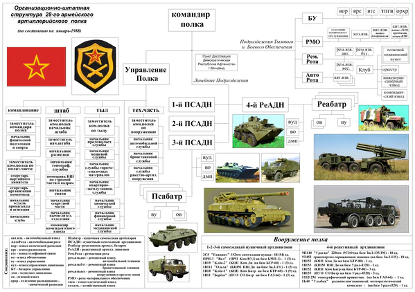 Состав и вооружение 28-го реап в период по 1 апреля 1986 года[1][2][3]:
