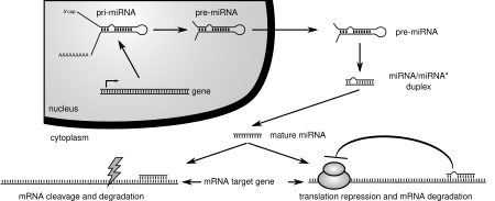 МикроРНК — короткие одноцепочечные некодирующие молекулы РНК эндогенного происхождения длиной около 20 нуклеотидов. Они взаимодействуют с мРНК-мишенями по принципу комплементарности и обычно блокируют трансляцию мишени или вызывают её разрушение. Как правило, сайты связывания микроРНК с мРНК локализованы в 3′-UTR последней, хотя некоторые из них находятся в 5′-UTR и даже кодирующей области. МикроРНК часто экспрессируются по-разному в зависимости от типа ткани и стадии развития, и генам, вовлечённым в общие для всех генов процессы, приходится селективно избегать последовательностей в транскриптах, частично комплементарных микроРНК, то есть избегать наличия сайтов связывания с микроРНК. Этот процесс селективного избегания оказывает огромное влияние на эволюцию 3′-UTR[11].