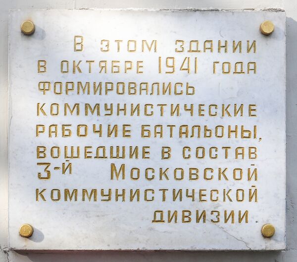 3-я Московская коммунистическая стрелковая дивизия сформирована с 17.10. по 24.10.1941 года в школе № 3 по адресу Чапаевский переулок, дом 6 Архивировано 25 августа 2011 года. из двадцати пяти коммунистических и рабочих батальонов на основании постановления ГКО № 10, от 04 июля 1941 года[1].